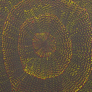 This painting depicts the sandhills of the Kintore and Connistan areas. It portrays winds and the desert environment after rain, and the seasonal changes in the desert landscape. Water holes, mountains and environmental influences are represented throughout the works. These contemporary interpretations demonstrate Lily’s deep understanding and knowledge of her country.